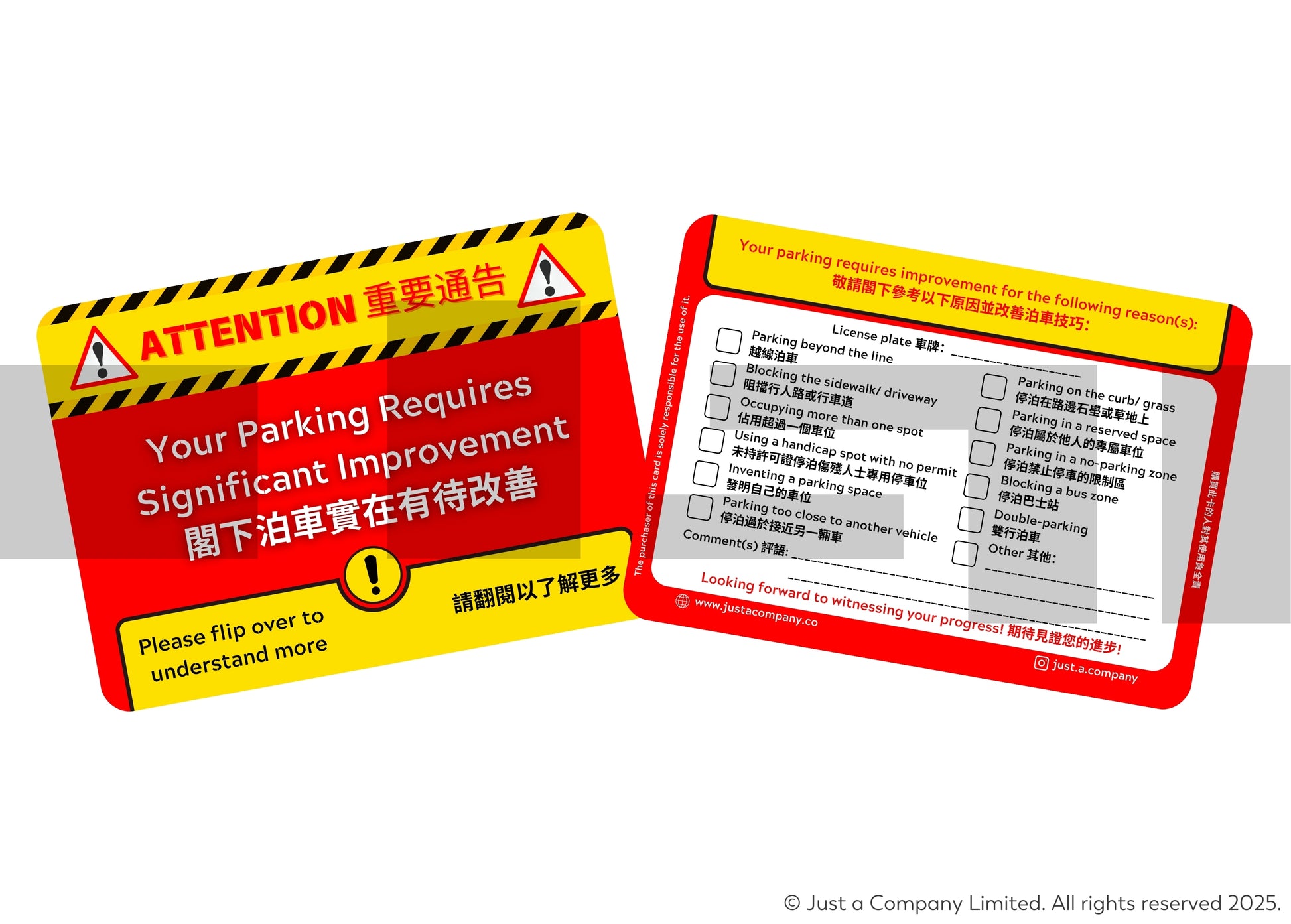 Parking Improvement Cards | PG Version | English and Traditional Chinese